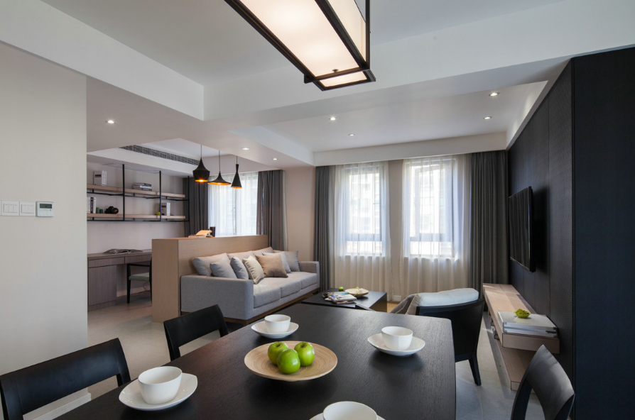 中鐵銀杏廣場85㎡二室現代簡約工期:76天清工輔料費:¥10.5萬元