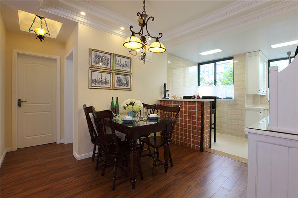 設計說明:摒棄了繁瑣和奢華,并將不同風格中的優秀元素匯集融合,以舒適機能為導向,強調“回歸自然”,使這種風格變得更加輕松、舒適。美式鄉村風格突出了生活的舒適和自由,不論是感覺笨重的家具,還是帶有歲月滄桑的配飾,都在告訴人們這一點。特別是在墻面色彩選擇上,自然、懷舊、散發著濃郁泥土芬芳的色彩是美式鄉村風格的典型特征。美式鄉村風格的色彩以自然色調為主,綠色、土褐色最為常見;壁紙多為純紙漿質地;家具顏色多仿舊漆,式樣厚重;